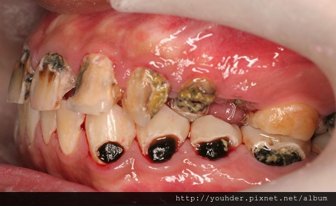 上述兩張照片是說明,齒質本來就不好,加上口腔衛生不佳、