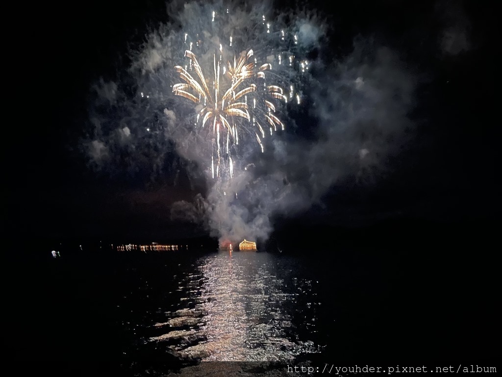 晚餐後湖邊有煙火秀+飯店24小時泡湯。