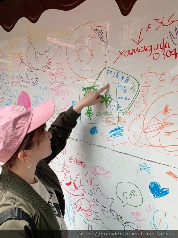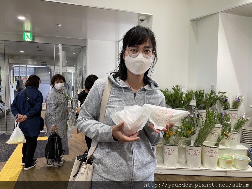 我看到欣霓在老婆婆攤子前要買鯛魚燒,